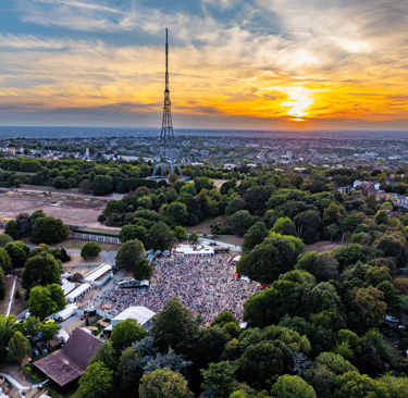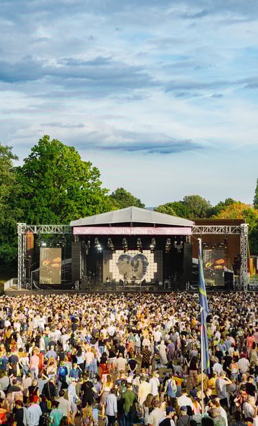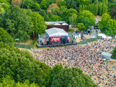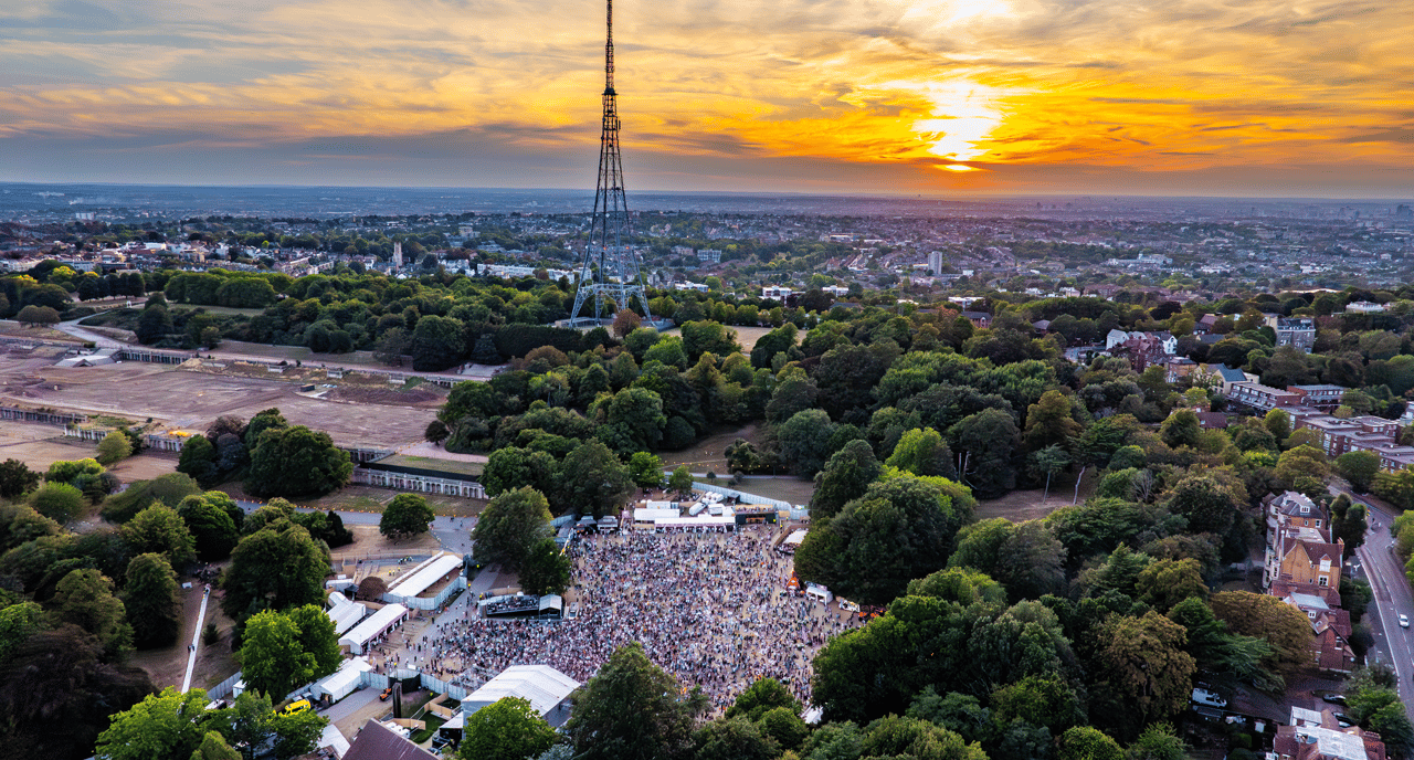 You don’t just walk into the Crystal Palace Bowl, you descend into it. It’s a proper natural amphitheatre, a huge grassy basin that slopes down towards a stage sitting on a lake. It’s a weirdly perfect setting for a festival, overlooked by the giant, sci-fi-looking Crystal Palace transmitting station. You can’t help but feel the history of the place. There’s literally a blue plaque on the stage where Bob Marley played his last ever London show. You feel that weight, that legacy.