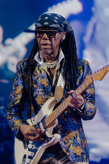 But honestly, who cares? The entire crowd was lost in a state of pure joy. Thousands of people, arms in the air, singing every single word. Rodgers himself grins through the whole thing, a man who knows he's created the ultimate party. His stories between songs, casually name-dropping Bowie and Madonna, just add to the magic.