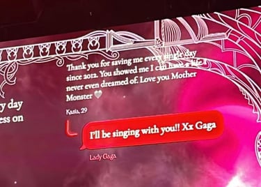 Act I is just a relentless assault of what you'd call 'Euro-influenced bangers'. It starts with the TikTok-revitalised 'Bloody Mary' before exploding into the new anthem, 'Abracadabra', followed by a furious medley of 'Judas' and 'Aura'. The whole thing culminates in a stunning set-piece for 'Poker Face', where the stage becomes a life-sized chessboard for a battle between a red-clad Gaga and her white-clad doppelgänger. But just as the Mistress of Mayhem symbolically 'shot' her innocent counterpart on stage, another antagonist emerged on the floor. A Lady in Blue, a security guard, began her own nagging crusade, obsessed with a phantom wristband that didn't exist. Her demands, getting louder than Gaga's own singing, became a persistent, discordant note in an otherwise perfect symphony.